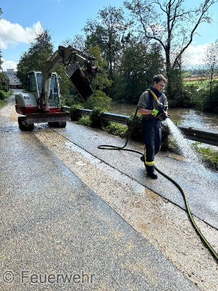 Die Unwetter- und Hochwasserlage im Gemeindegebiet hat sich am Dienstag wieder beruhigt und unsere Mitglieder konnten mit den Aufräum- und Reinigungsarbeiten beginnen.