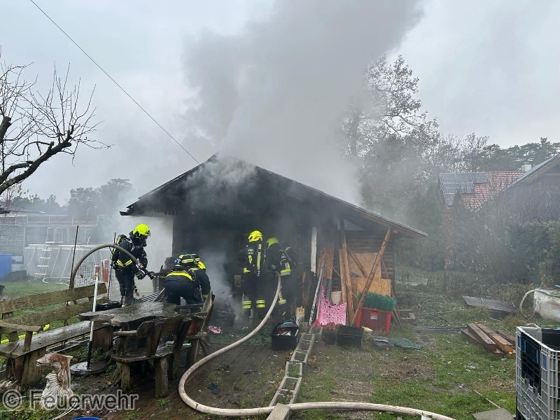 Am 03.12.2024 wurde die FF Mauer-Öhling gegen 10:30 Uhr zu einem B2-Brand einer Gartenhütte in Neufurth alarmiert.