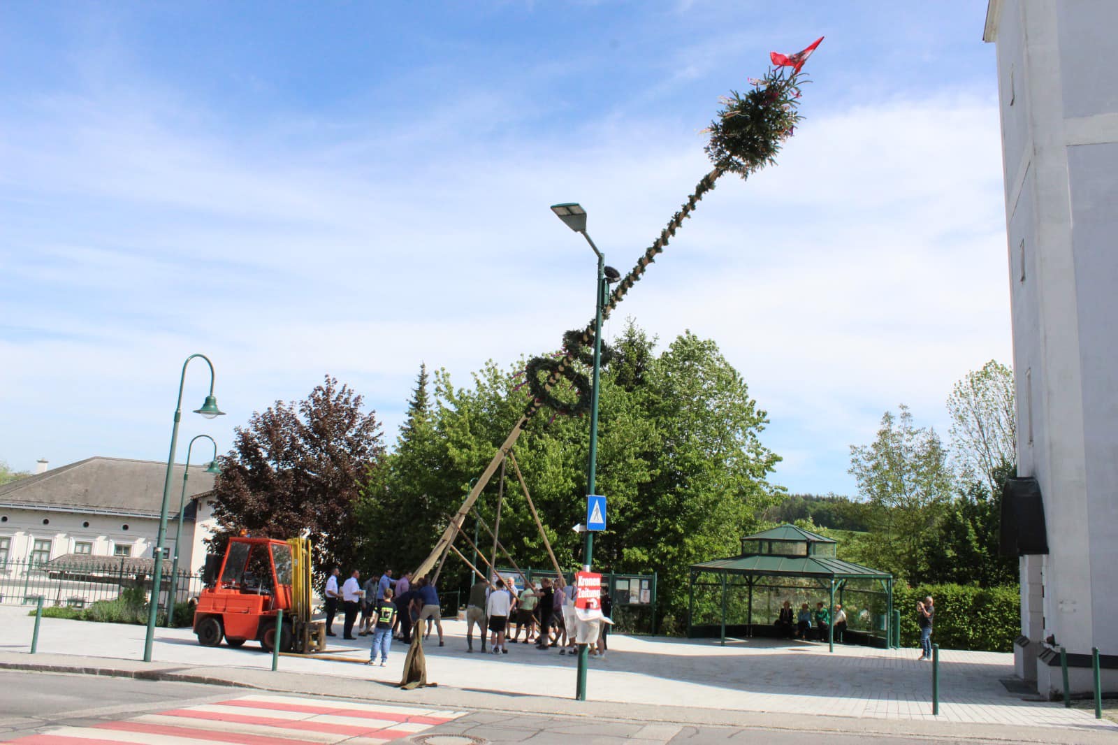 Am 1. Mai um 10:30 startete der Frühschoppen zum diesjährigen Maibaumsetzen im Feuerwehrhaus.