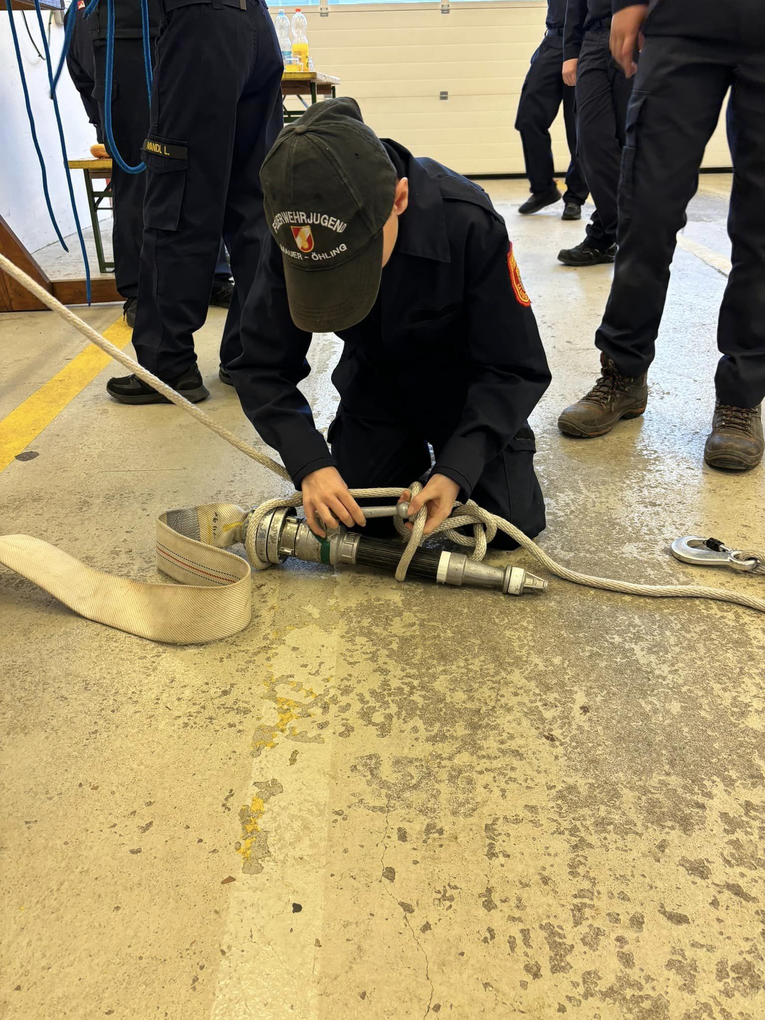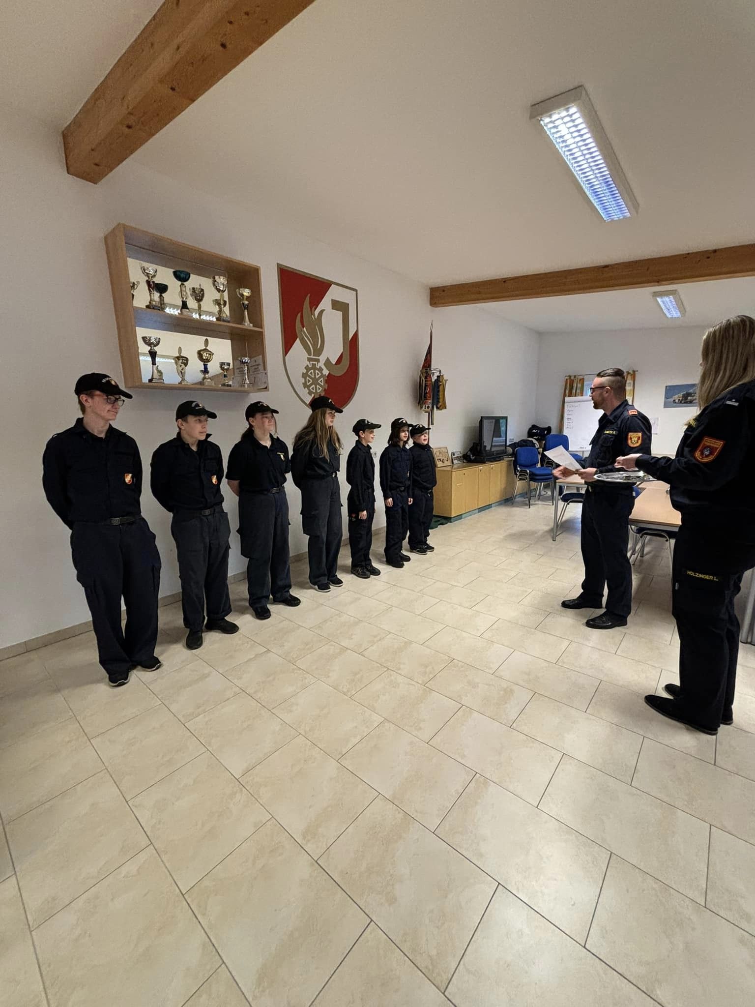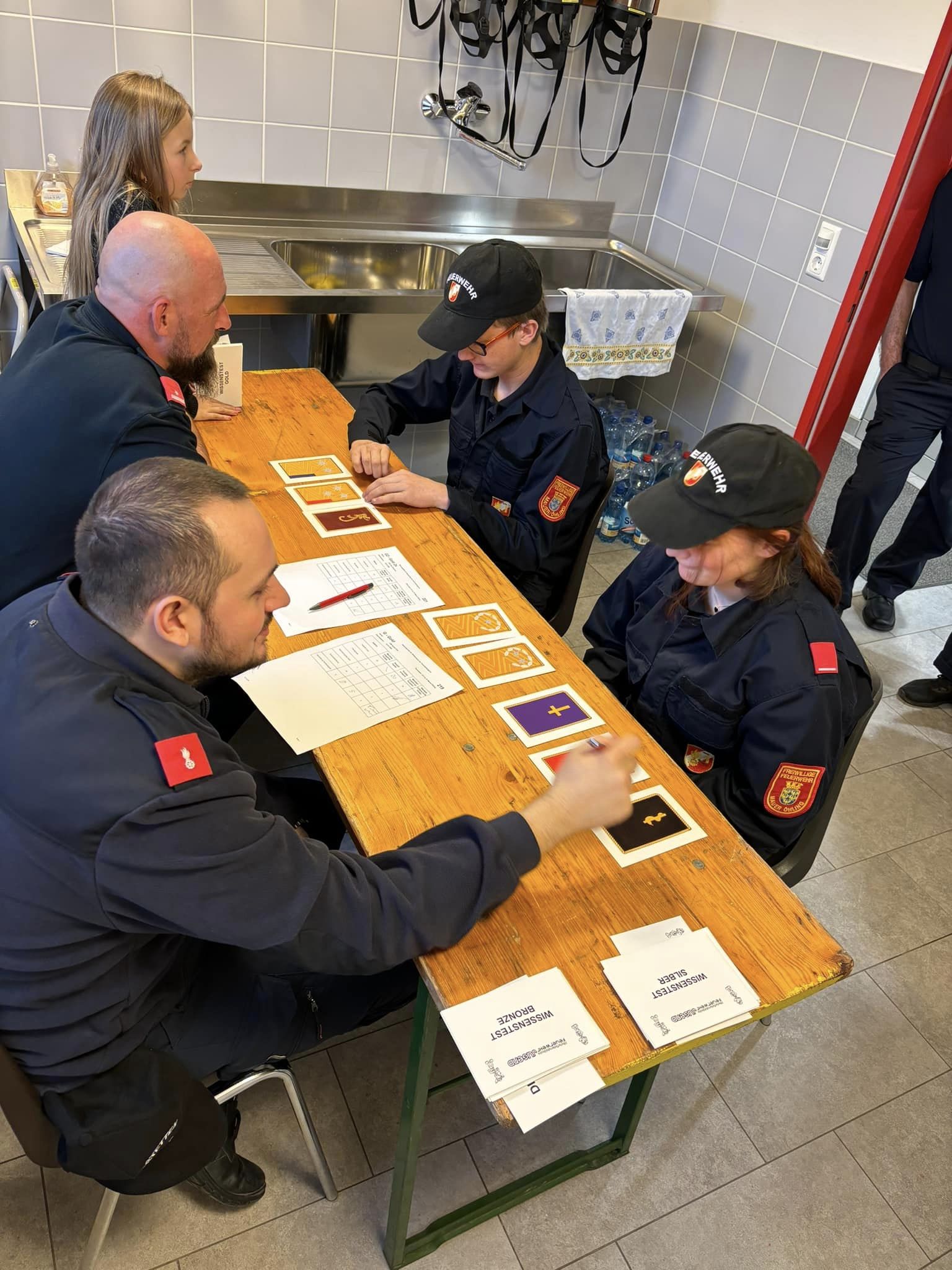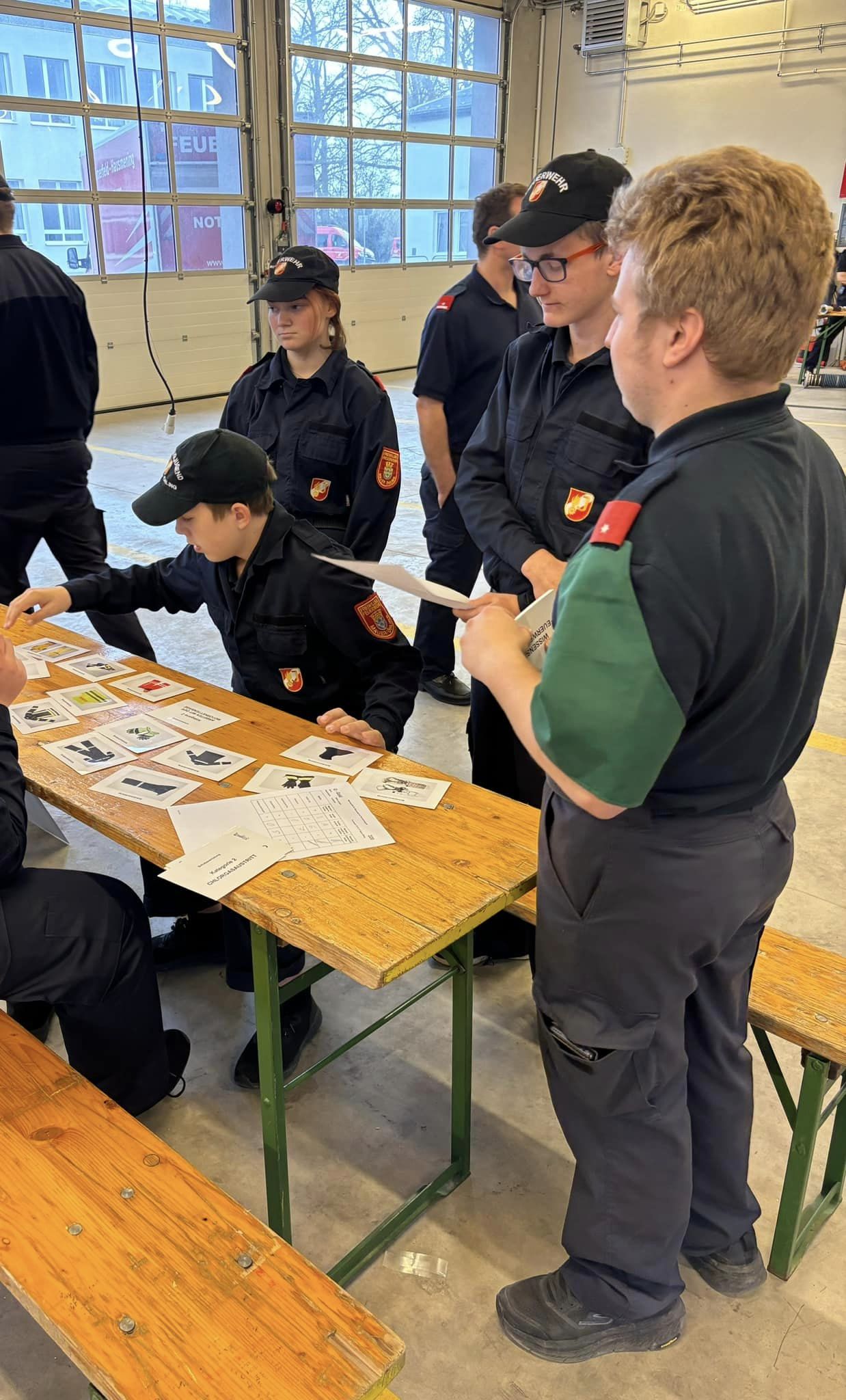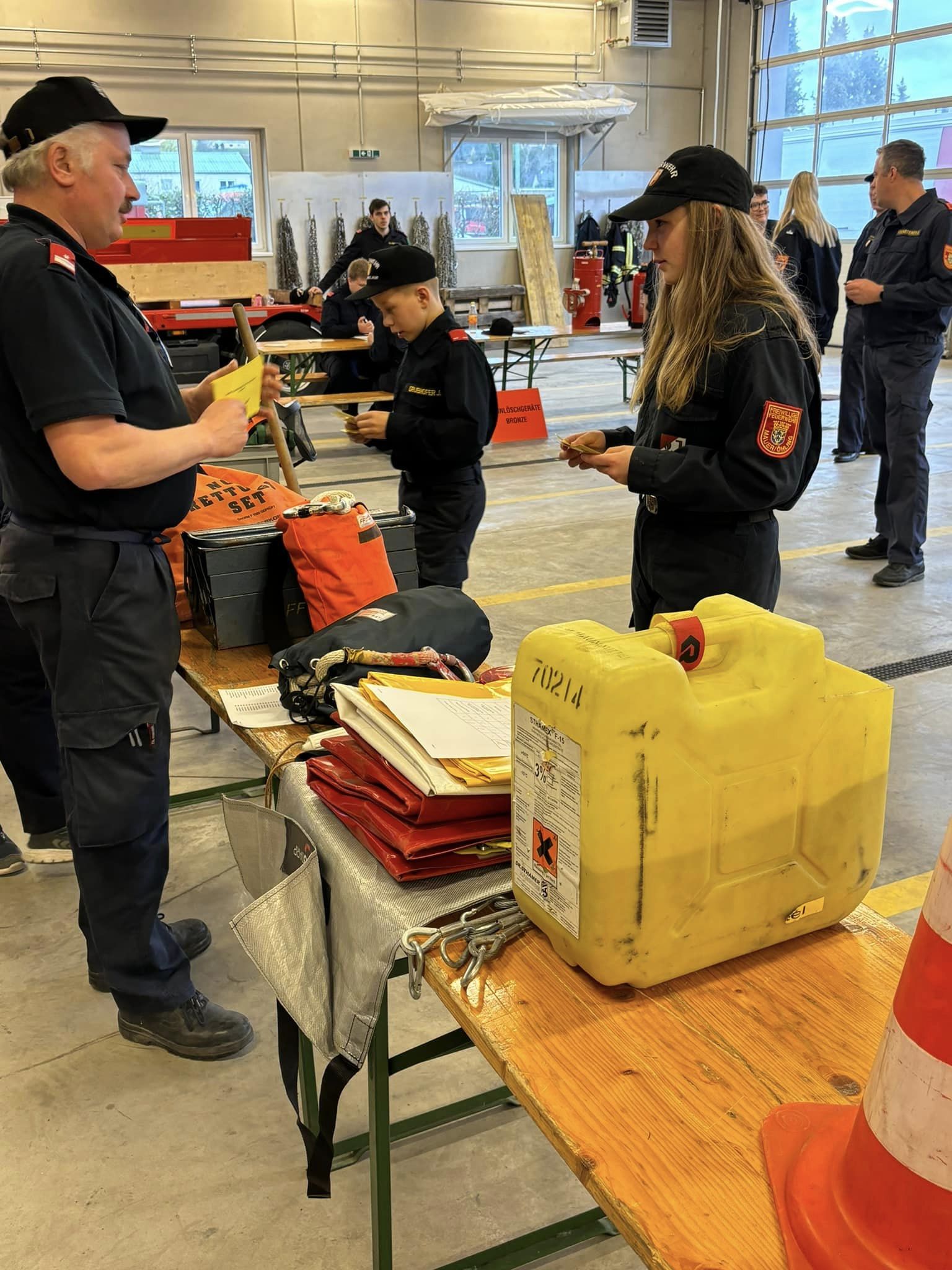 Bei dieser Prüfung mussten verschiedene Stationen wie Erklärung des Funkgerätes, Dienstgrade, Kleinlöschgeräte, Knoten, Feuerlöscher sowie ein Schriftlicher Test bewältigt werden.